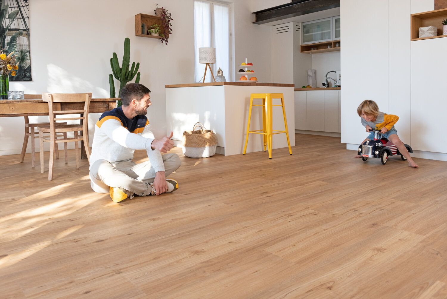 Die Serie Senso Premium verfügt über eine 0,55 mm starke Nutzschicht, die den Vinylboden zuverlässig vor normalen Beanspruchungen schützt. Die Oberflächenbehandlung PUR+ ist schmutz- und fleckenabweisend, sodass der Vinylboden besonders leicht zu reinigen ist. Durch das innovative und patentierte Klick-System, lassen sich die Elemente einfach verlegen.